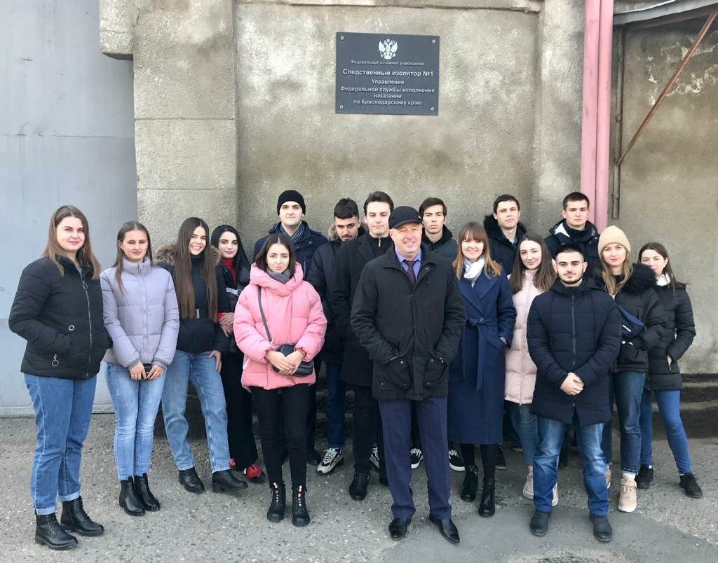 25 ноября 2019 года в рамках заключенного Соглашения о сотрудничестве между Кубанским государственным университетом и УФСИН России по Краснодарскому краю по инициативе кафедры уголовного процесса при участии Общественной палаты Краснодарского края и поддержке начальника УФСИН по Краснодарскому краю полковника внутренней службы В.В. Пестова состоялось посещение студентами 3 курса юридического факультета КубГУ СИЗО № 1 города Краснодара.